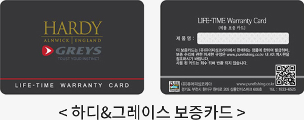 하디와 그레이스 상표로 판매되는 플라이 낚시대도 제품과 함께 제공되는 하디&그레이스 평생보증카드를 통해 기간에 제한없이 평생 1회 무상제공되는 평생품질보증제도의 혜택을 받으실 수 있습니다.