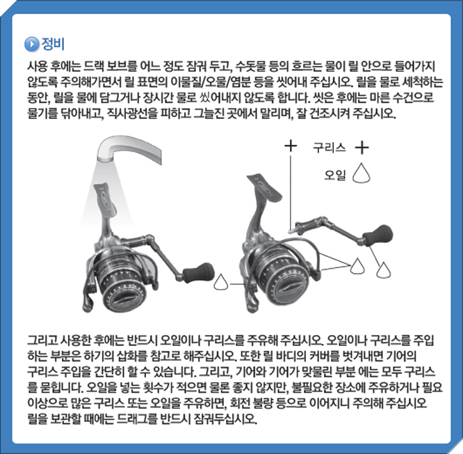 바다(또는 민물)에서 릴을 사용후 어떻게 관리해야 하나요?
