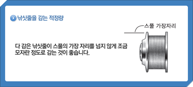 스피닝릴에 라인을 스풀에 감을 때, 라인이 스풀 위 또는 아래로 감기는데 릴 불량이 아닌가요?